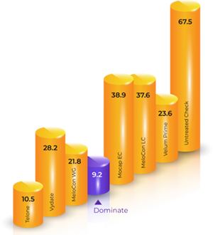 Dominate is a broad-spectrum, highly concentrated biological inoculant designed to restore the natural checks and balances found in healthy soils. Replicated third-party trials exploring efficacy on soil-borne disease and nematode pressure, as well as large-scale split field trials, all show similar results: Dominate can do the job. Dominate offers flexibility that current soil fumigation practices don’t. No plant back restrictions with Dominate mean a lot in compressed spring planting seasons. We push our soils. We created Dominate to be a great investment in soil health. Think of it as your new tool for helping to manage disease pressure on a probiotic basis.